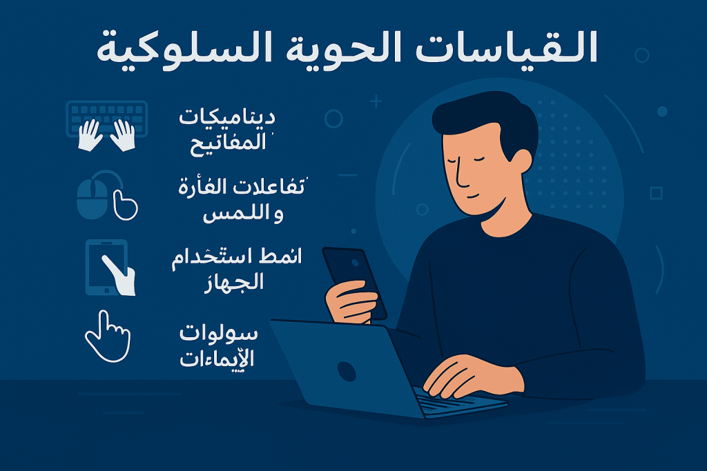 القياسات الحيوية السلوكية تعني دراسة الأنماط الفريدة في سلوك المستخدم أثناء تفاعله مع الأجهزة والتطبيقات. أمثلة شائعة: